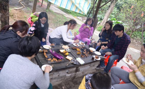 烧烤现场热闹特殊,,,,,,,,各人配合默契,,,,,,,,有的穿串、有的烤制,,,,,,,,烧烤配料和零食富厚多样,,,,,,,,各人在一片欢声笑语中配合品尝美食。。。。。。
