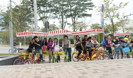 品尝美食后,,,,,,,,前往海珠区生物岛,,,,,,,,最先自行车环岛之旅。。。。。。各人各自租个自行车,,,,,,,,骑上环岛嬉戏,,,,,,,,既能磨炼身体,,,,,,,,又能鉴赏到漂亮的江景,,,,,,,,真是再惬意不过!各人以为世间的一切骚动都远离而去,,,,,,,,只剩下耳畔的风和眼前的江水。。。。。。在欢喜的气氛中,,,,,,,,我们竣事了此次愉快的运动。。。。。。