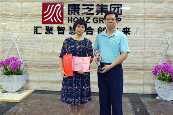 △越秀区工商联党组书记张志强给洪丽萍副董事长颁奖