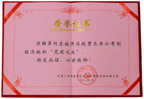 为树立典范,,,,,,,,弘扬先进,,,,,,,,进一步推进非公有制经济组织康健生长,,,,,,,,推进非公有制经济组织党建事情,,,,,,,,在纪念中国共产党建设98周年之际,,,,,,,,广州市越秀区非公有制经济组织党委在非公有制经济组织中开展“党建之友”评选运动,,,,,,,,必威西汉姆联官网首页药业副董事长兼副总裁洪丽萍同志荣获越秀区非公有制经济组织“党建之友”声誉称呼。。。。。。