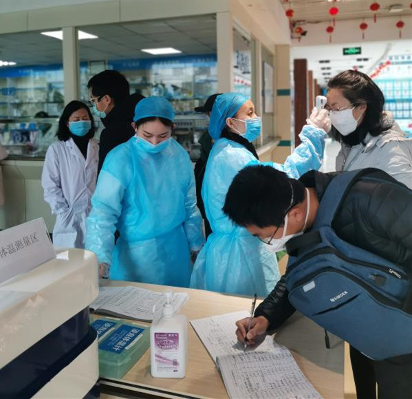 医院严酷凭证疫情防控要求,,,,,,,将员工通道与患者通道脱离,,,,,,,患者从门诊大厅进入医院,,,,,,,而医护职员从侧门进入医院,,,,,,,不管是正门照旧侧门,,,,,,,都设立了发热预检核。。。。。。。医护职员24小时值班,,,,,,,严防死守,,,,,,,不漏一人,,,,,,,对进入医院的患者及眷属,,,,,,,医护职员、后勤职员等在内的所有职员进体温丈量,,,,,,,实时识别可疑病例,,,,,,,做到“早发明、早报告、早隔离、早治疗”。。。。。。。
