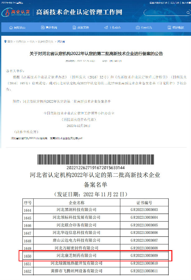 克日,,,,,,,天下高新手艺企业认定管理事情向导小组办公室批复了河北省2022年高新手艺企业认命名单,,,,,,,必威西汉姆联官网首页药业旗下子公司河北必威西汉姆联官网首页制药有限公司依附着专业实力及立异能力,,,,,,,乐成通过河北省“高新手艺企业”认定。。。。。